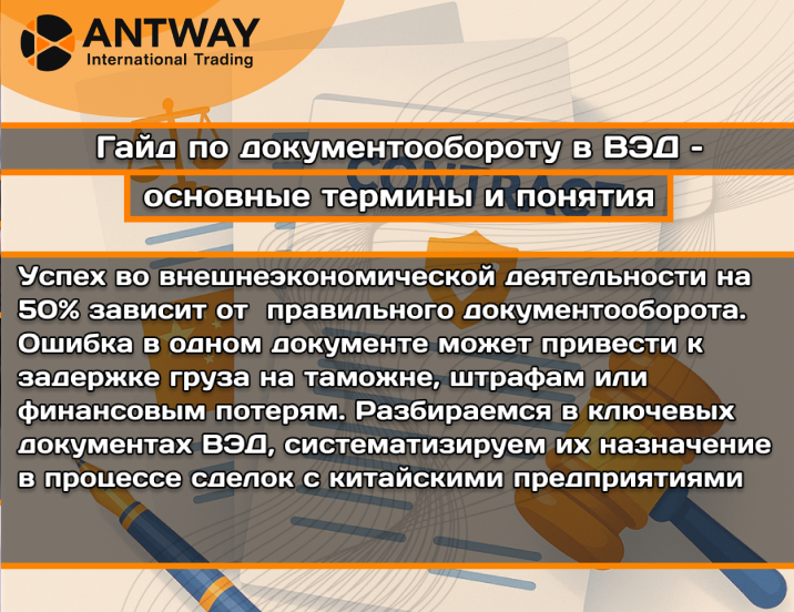 Если вы хотите сосредоточиться на бизнесе, а не на изучении тонкостей таможенного и валютного законодательства, передайте документооборот профессионалам. Antway Company обеспечивает полное юридическое и логистическое сопровождение ваших внешнеторговых операций, включая подготовку и проверку всех необходимых документов, таможенное оформление и взаимодействие с банками по валютному контролю.